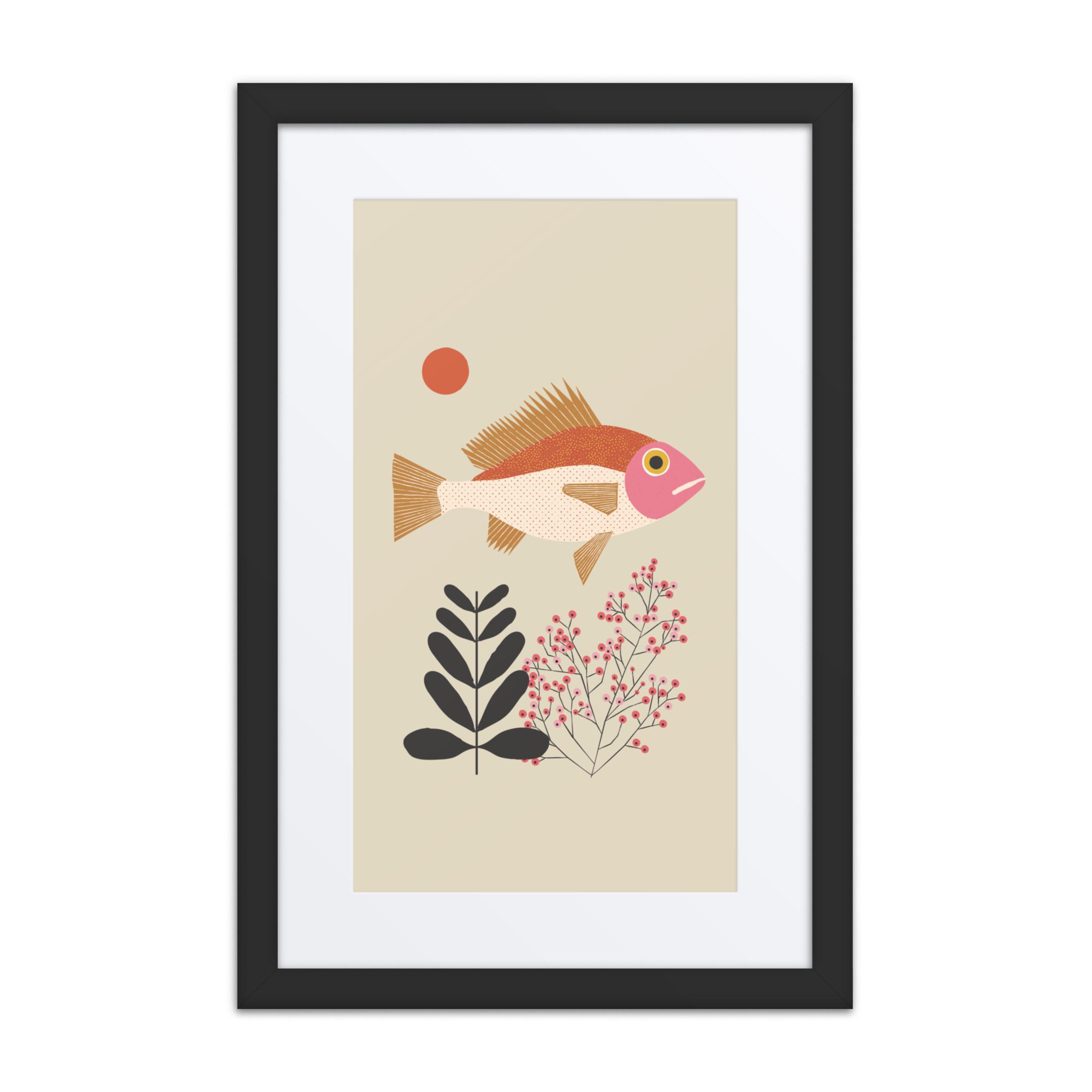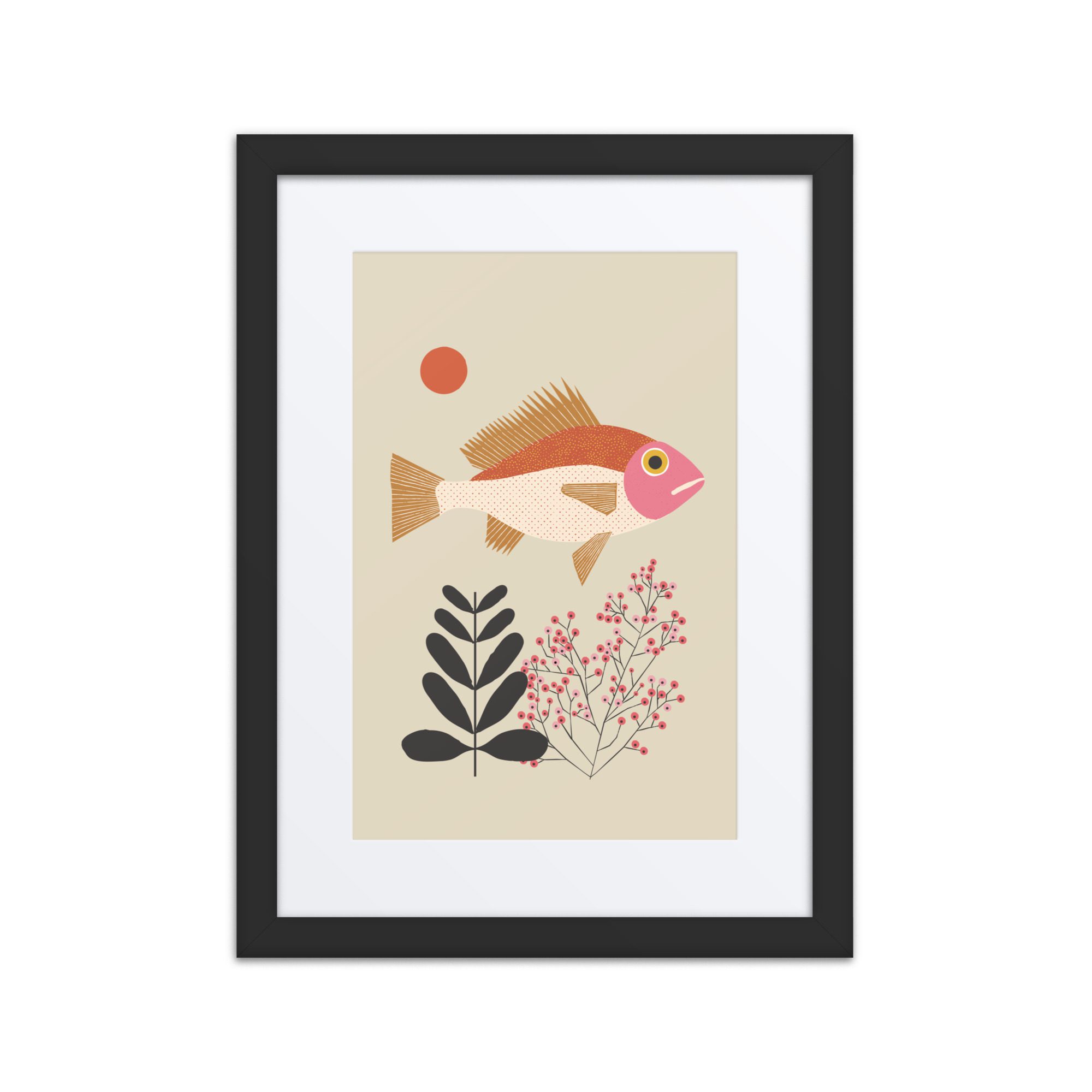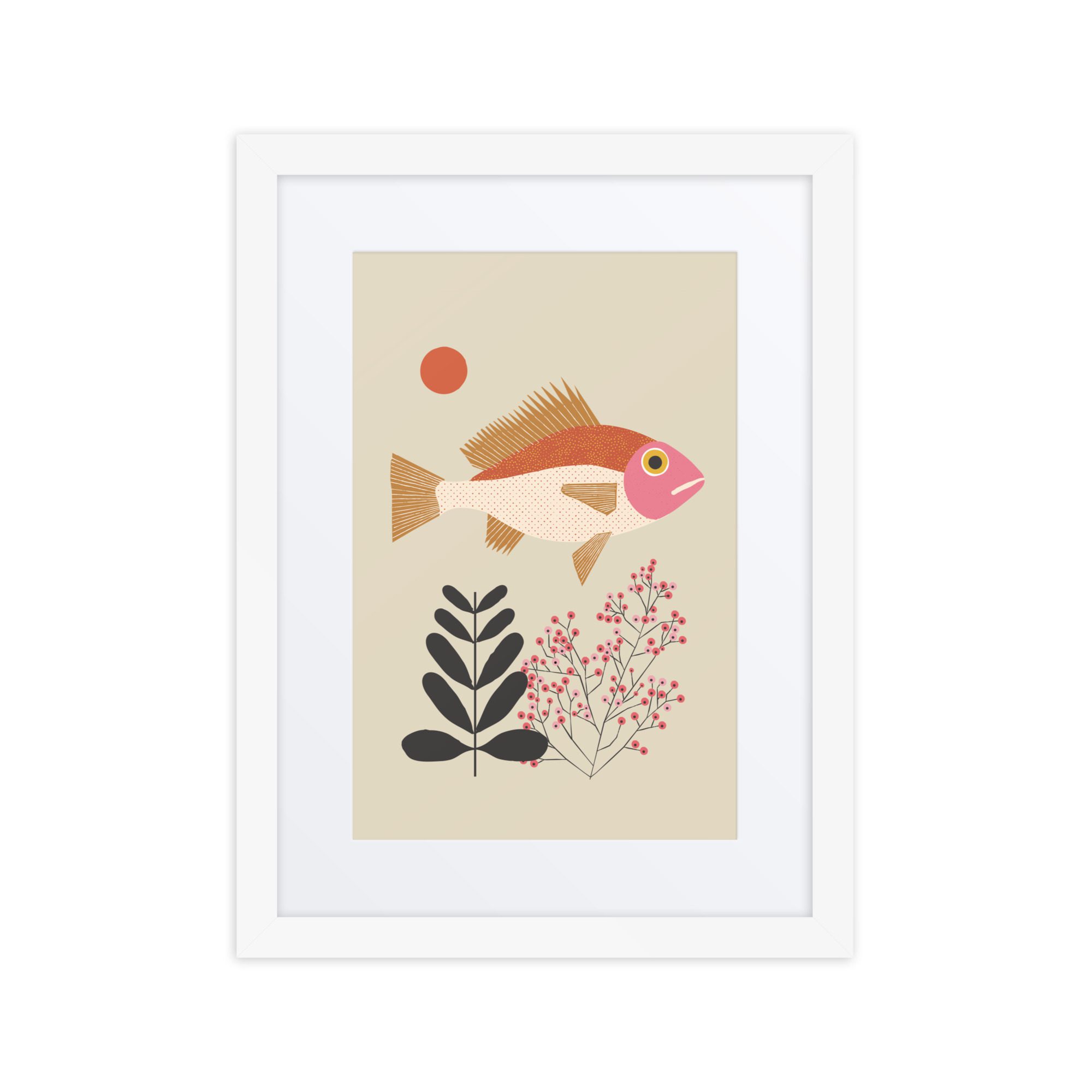 A sweet fish illustration framed art print with soft colour and a gentle, playful feel.