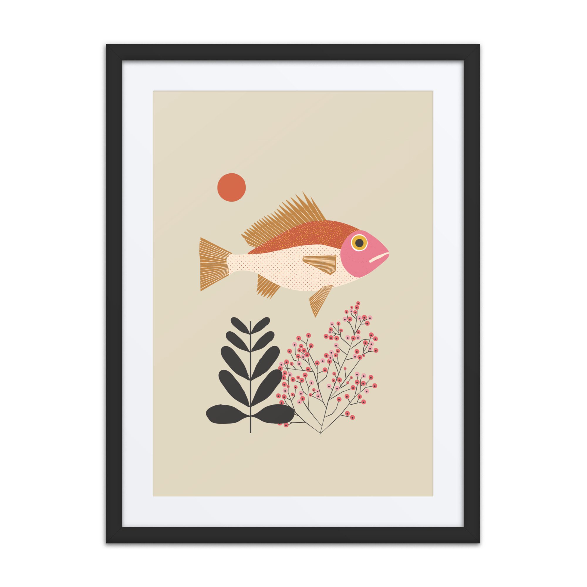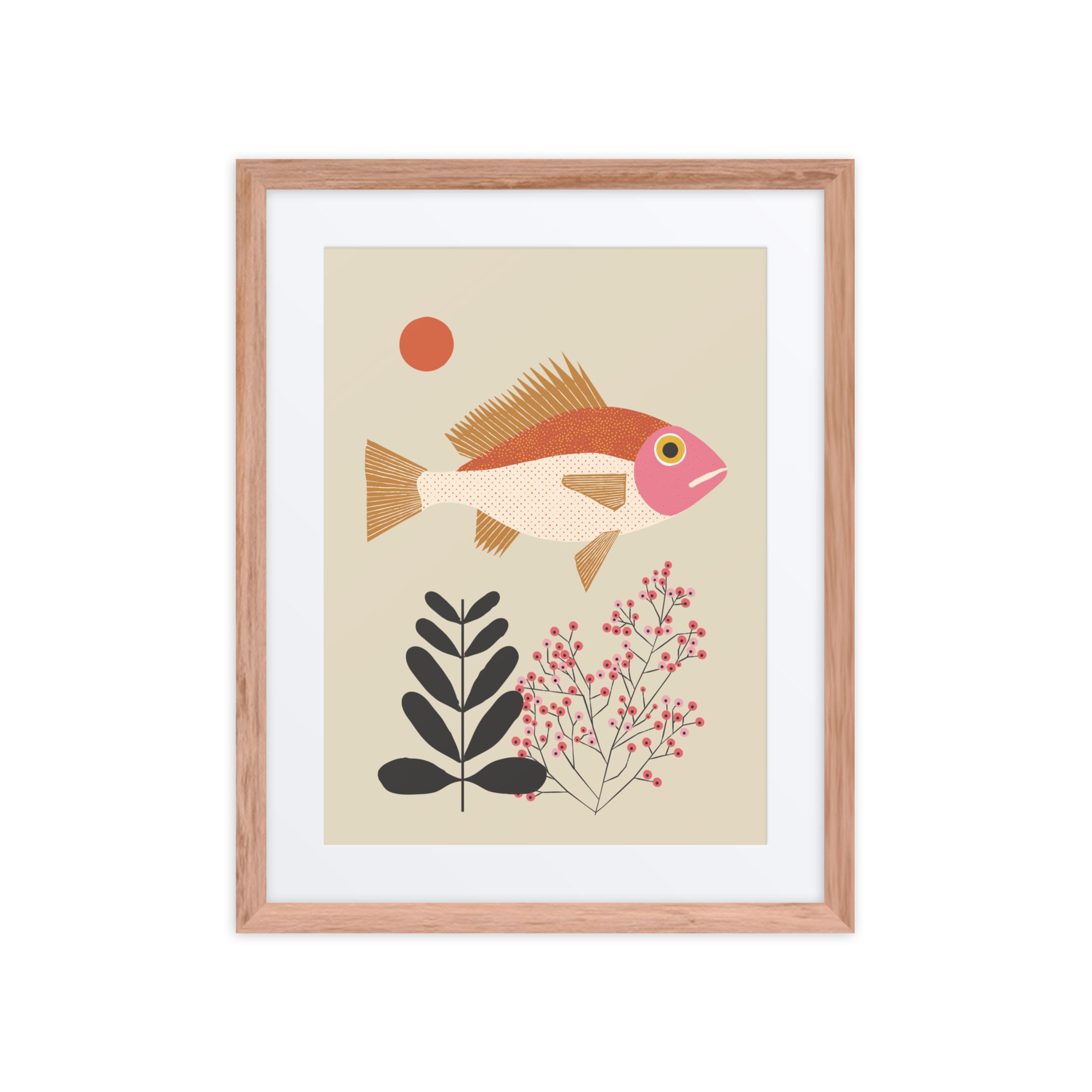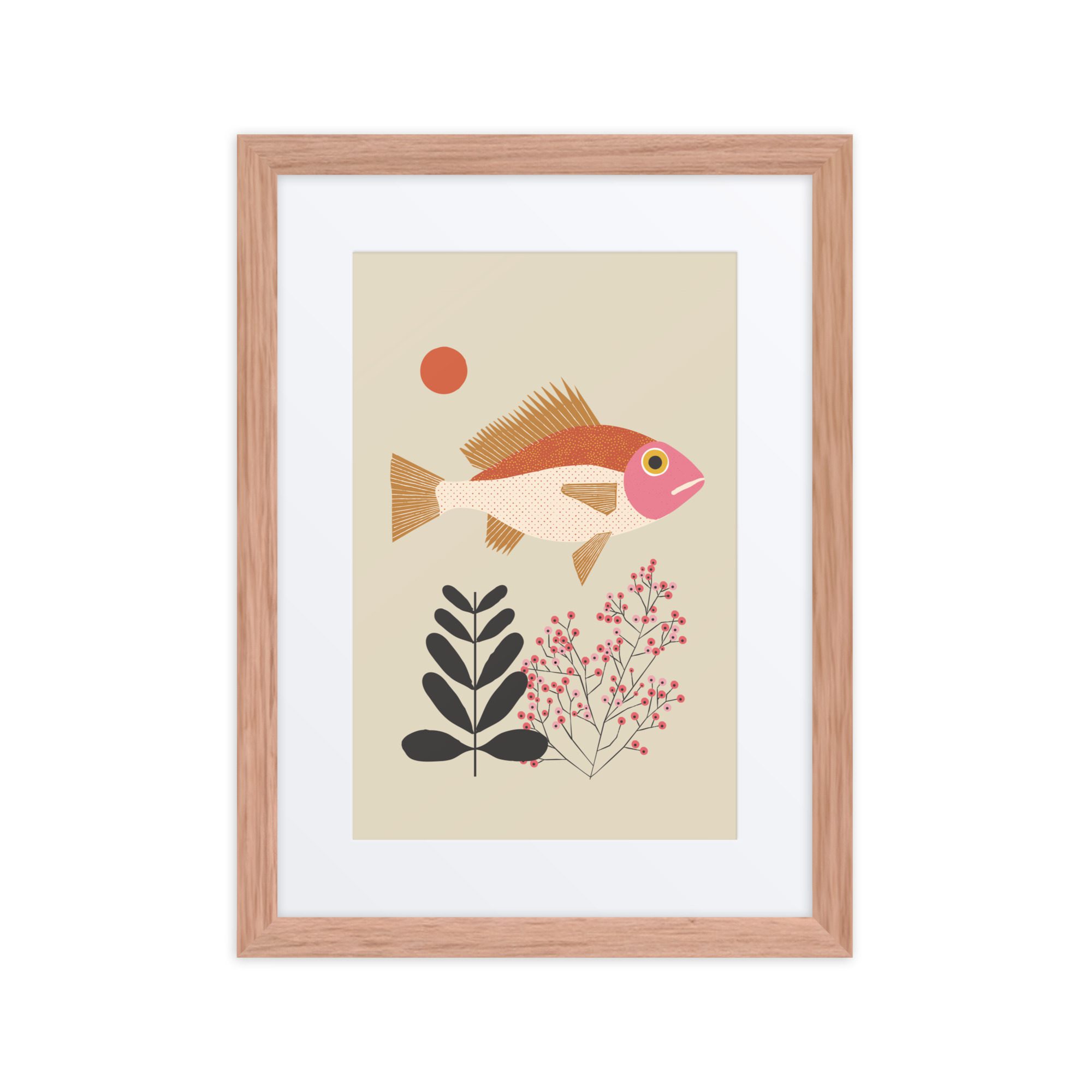 A sweet fish illustration framed art print with soft colour and a gentle, playful feel.