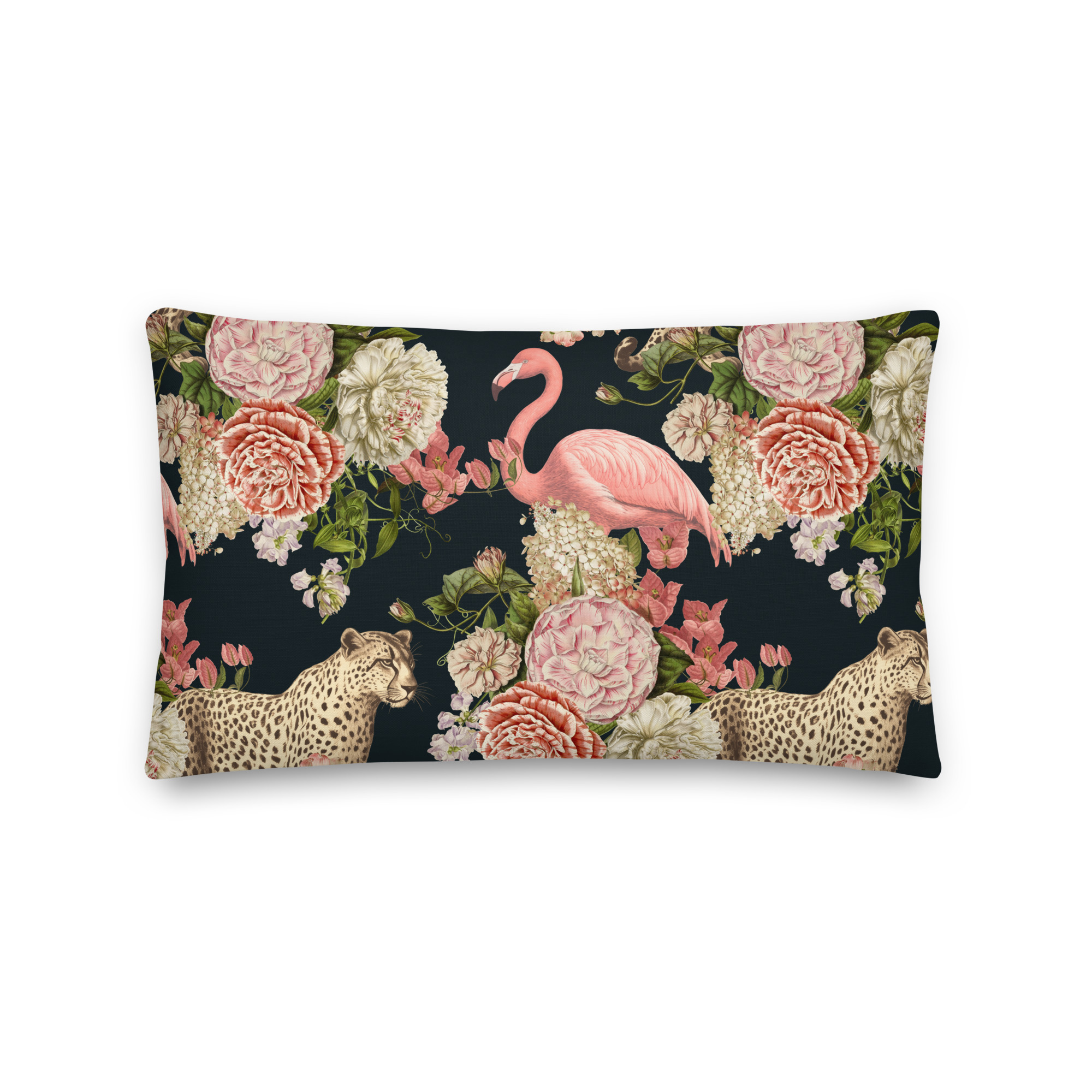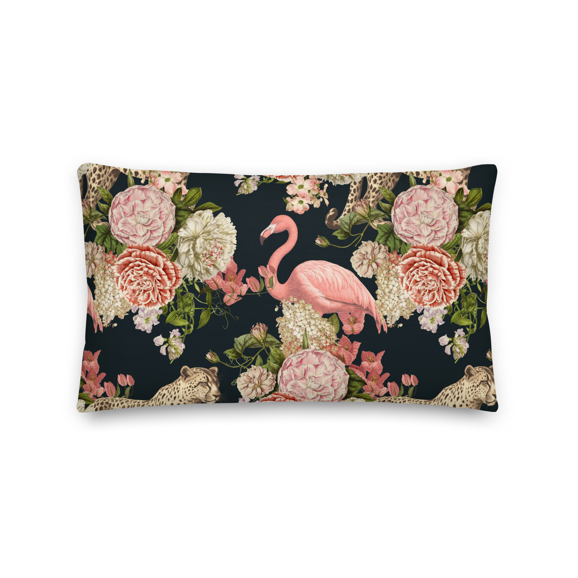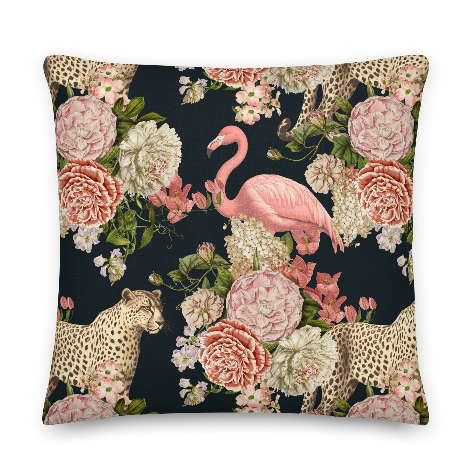 Flamingo Cheetah Floral Premium Pillow