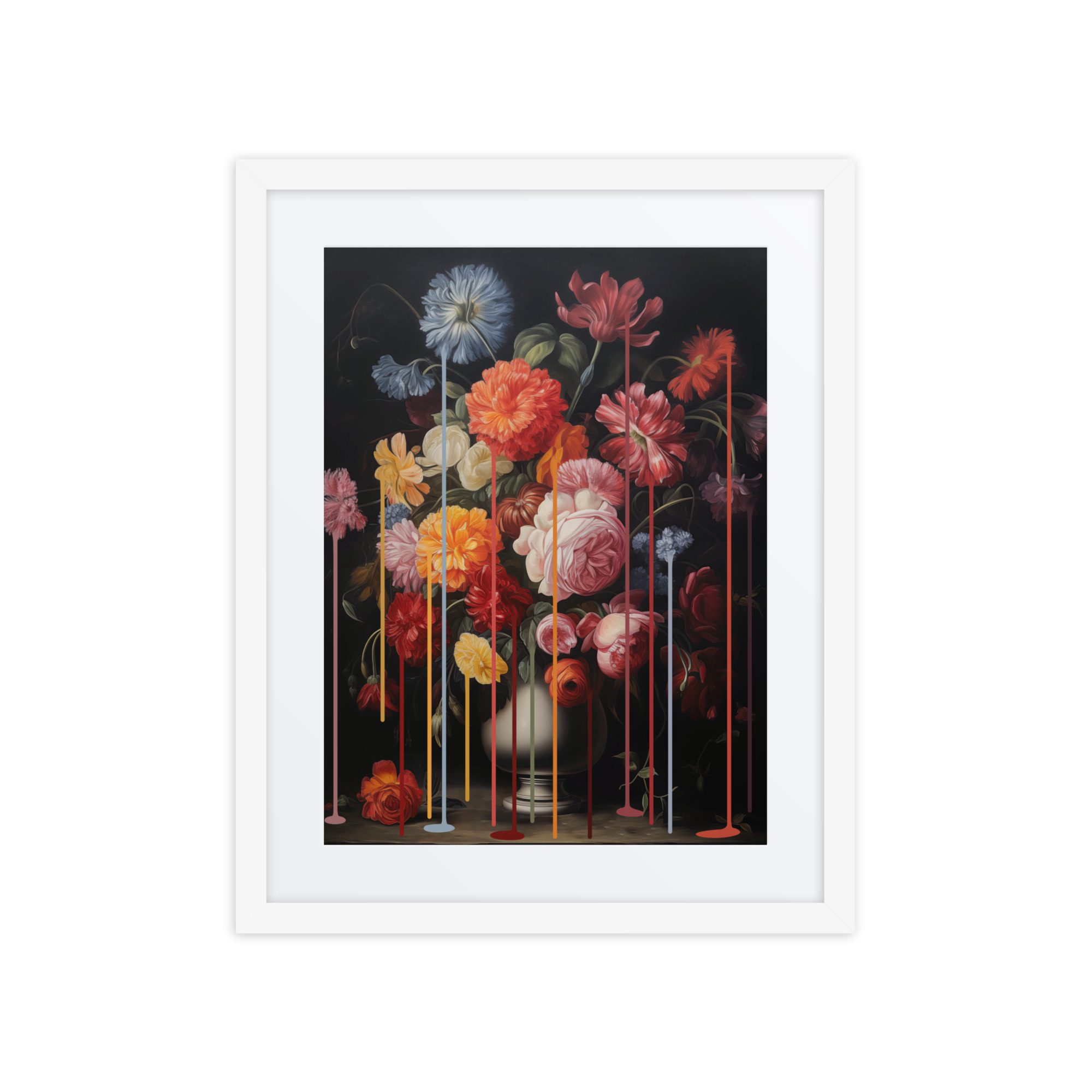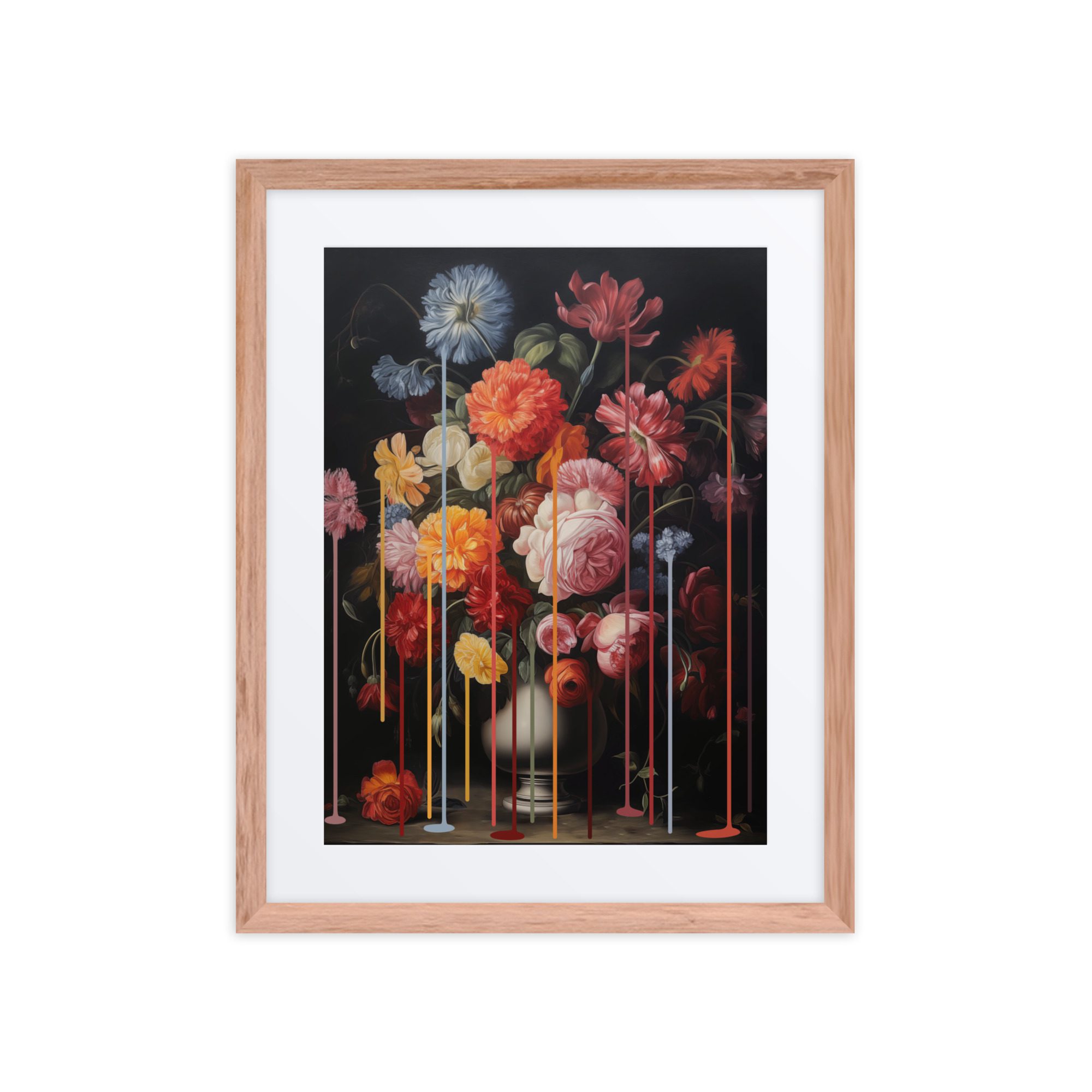 A sweet floral drip framed art print with gentle colours and a pretty pattern.