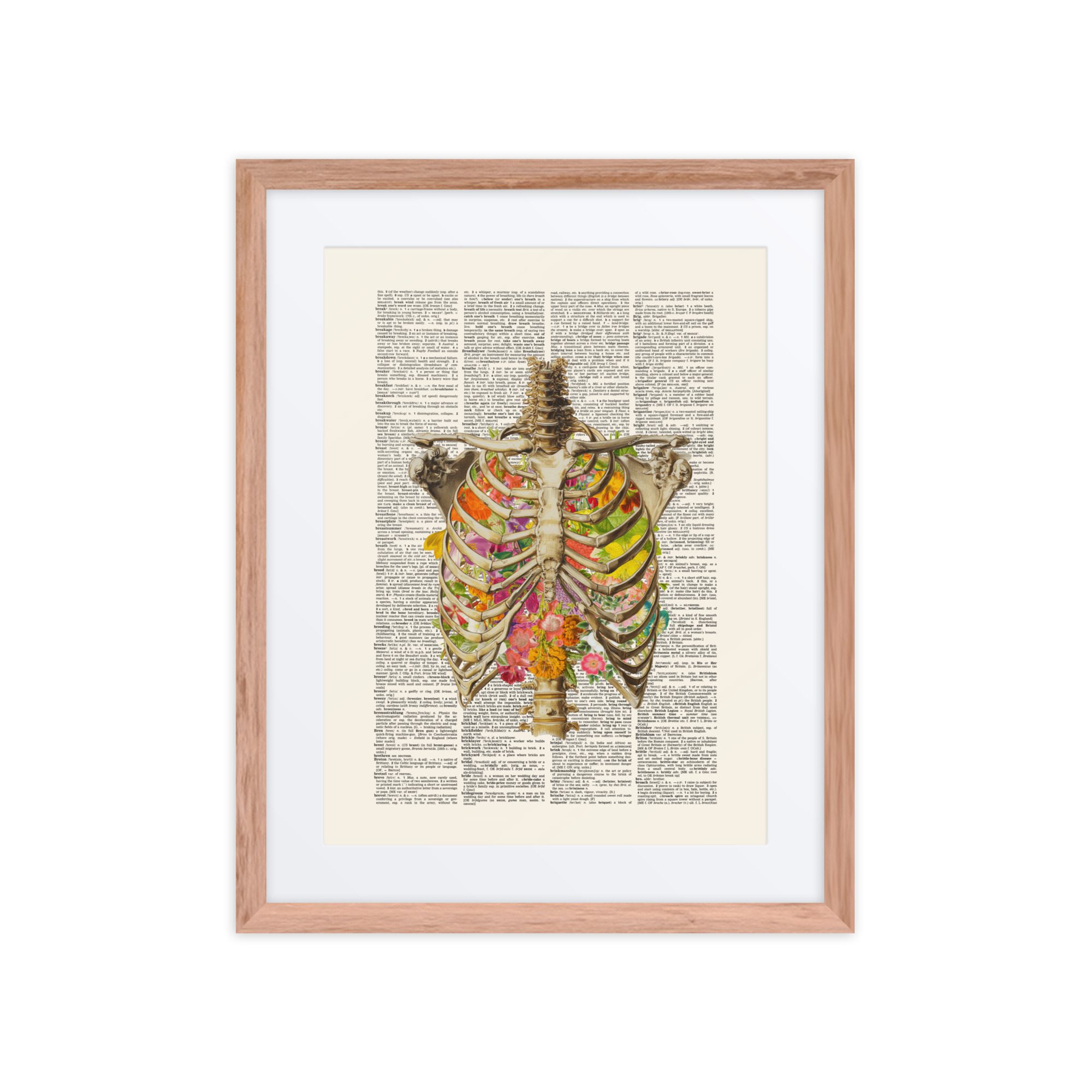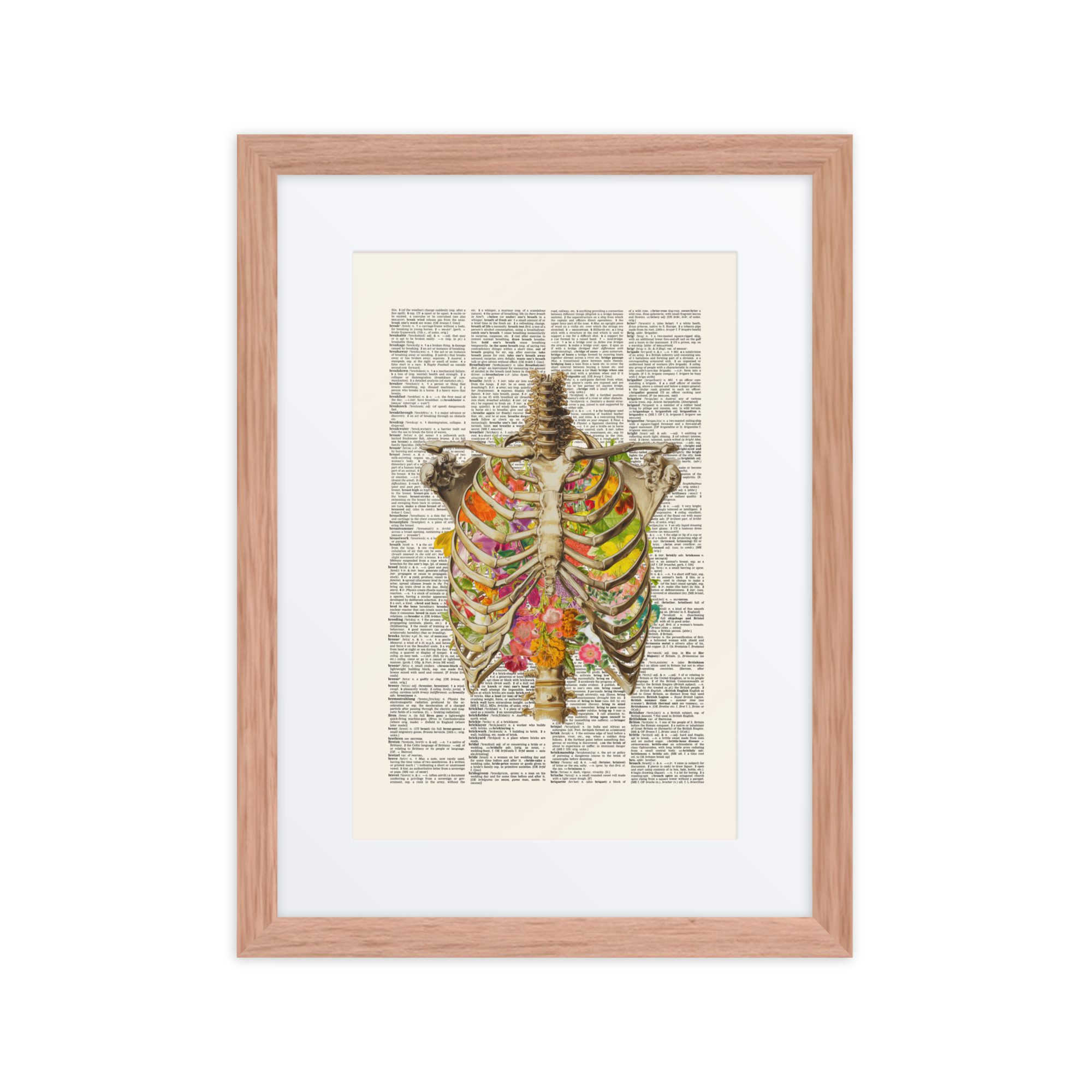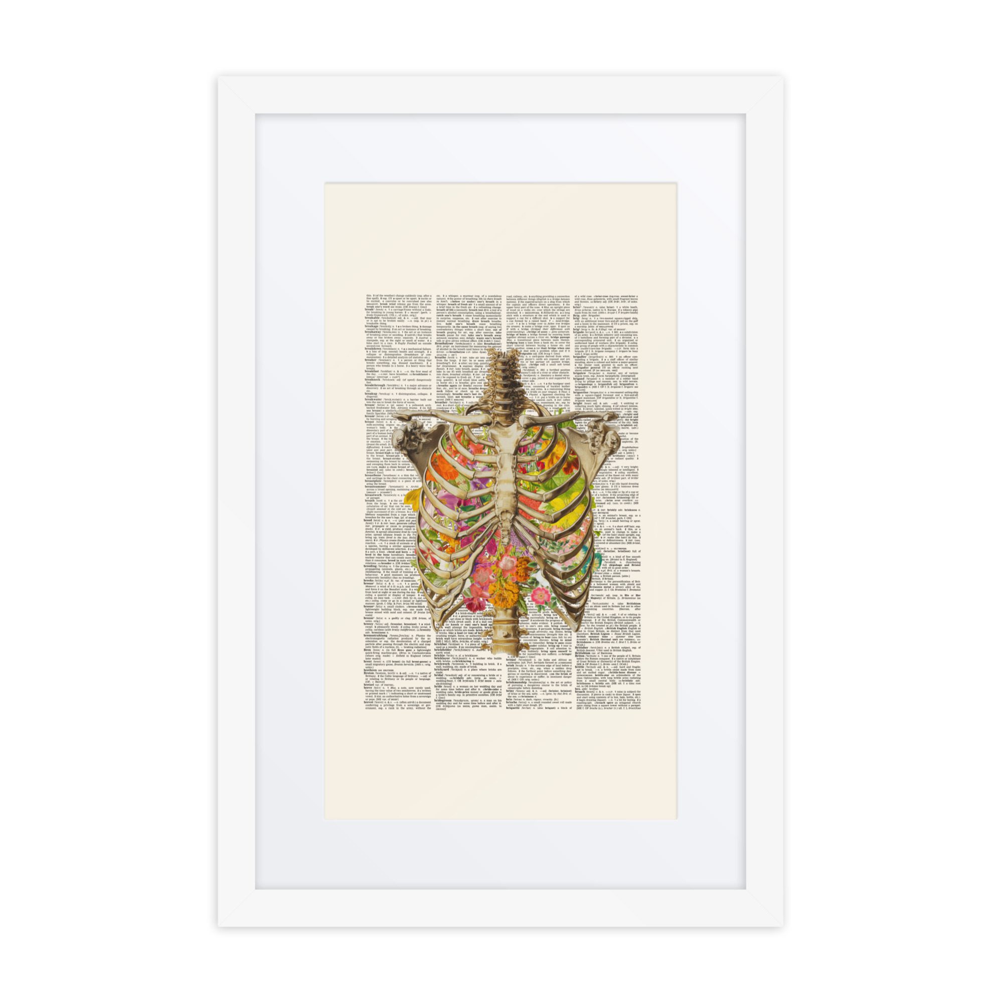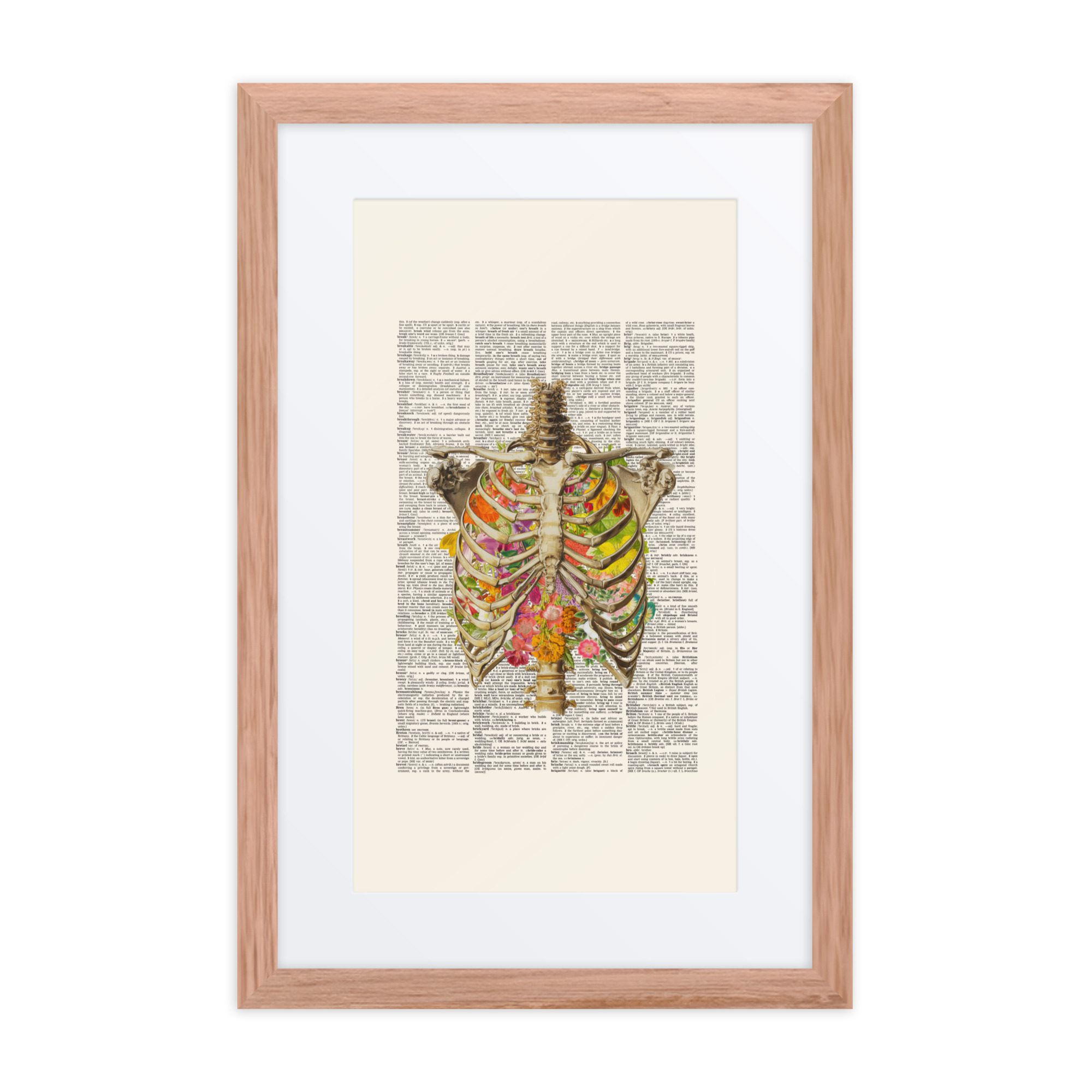 A sweet floral ribs framed art print with gentle colours and a pretty pattern.