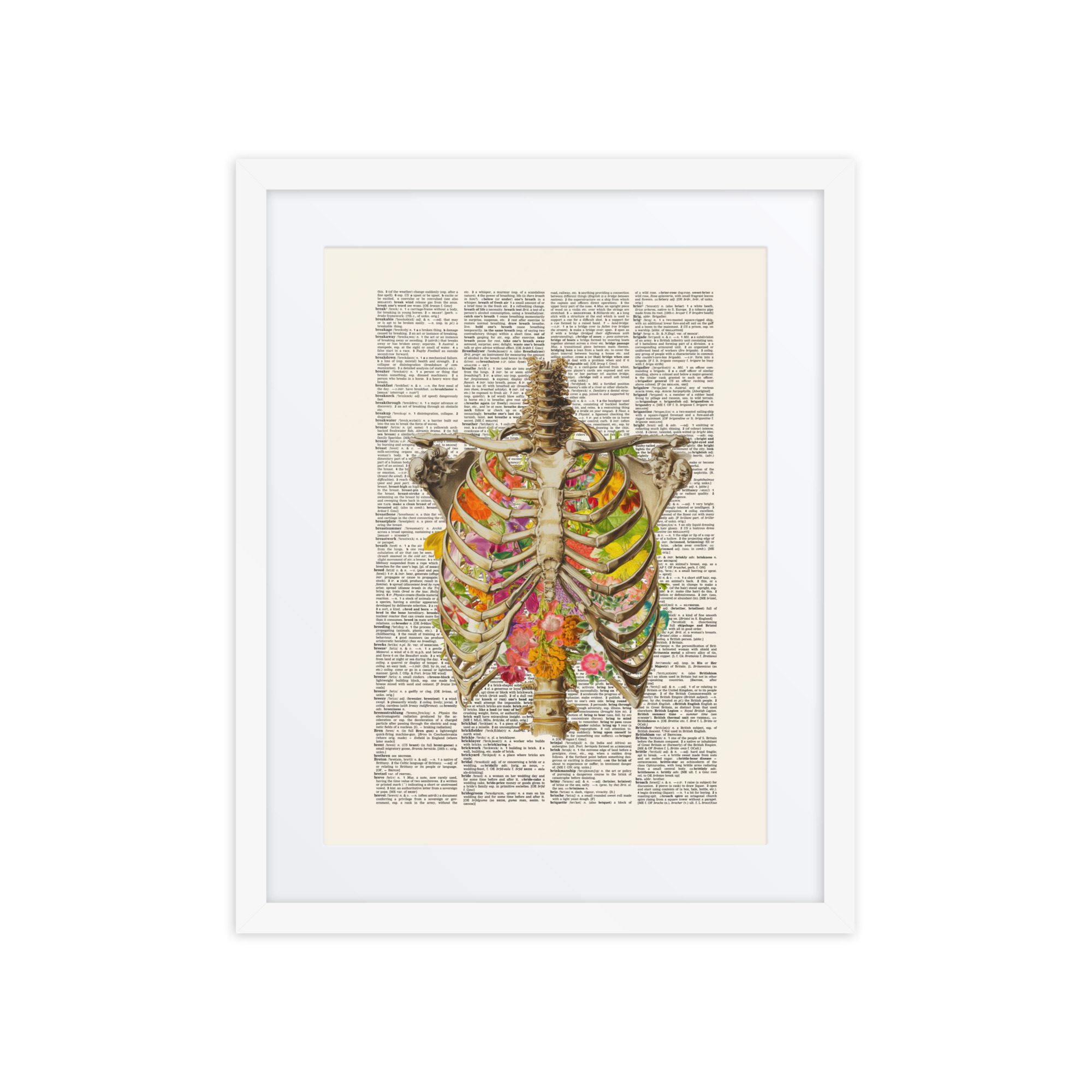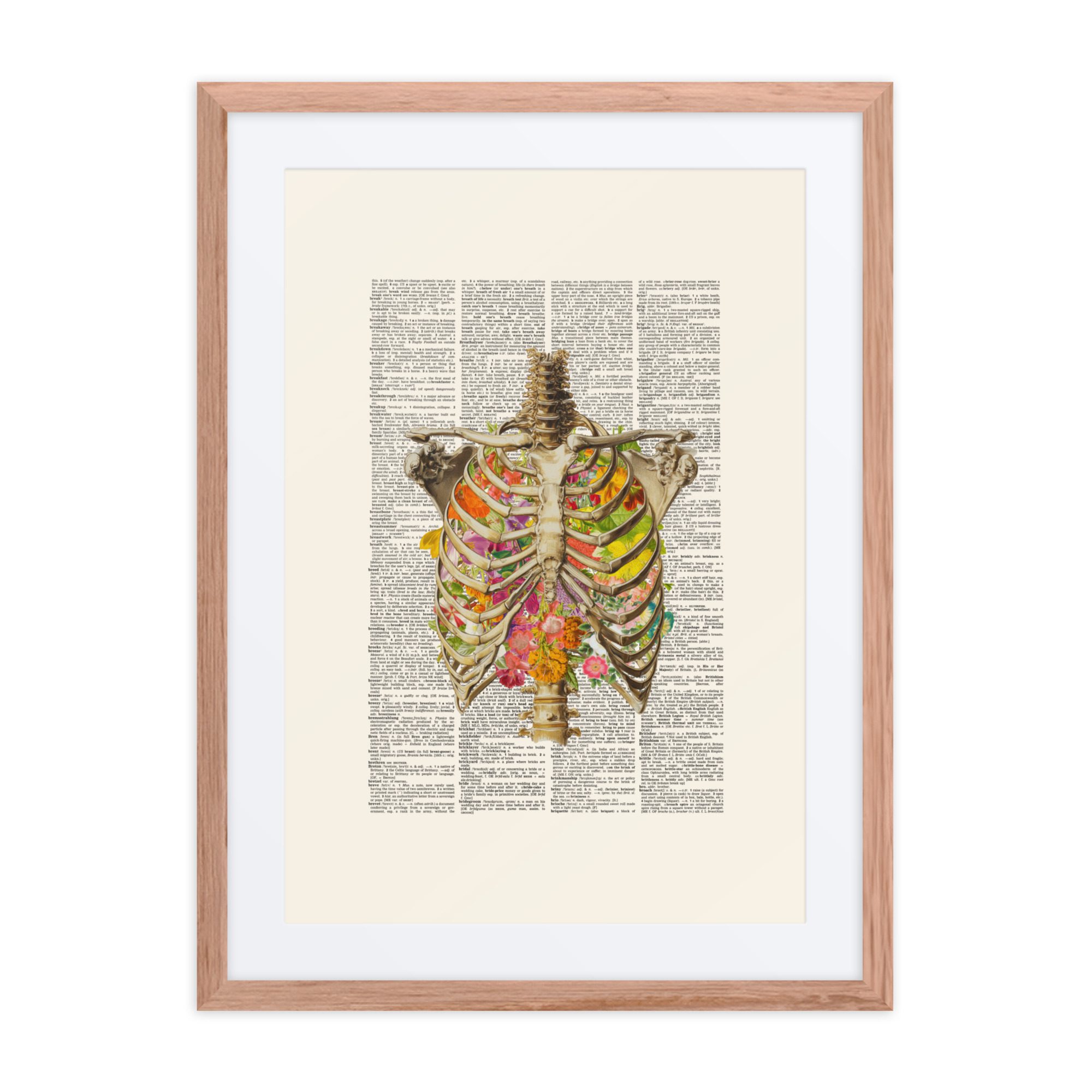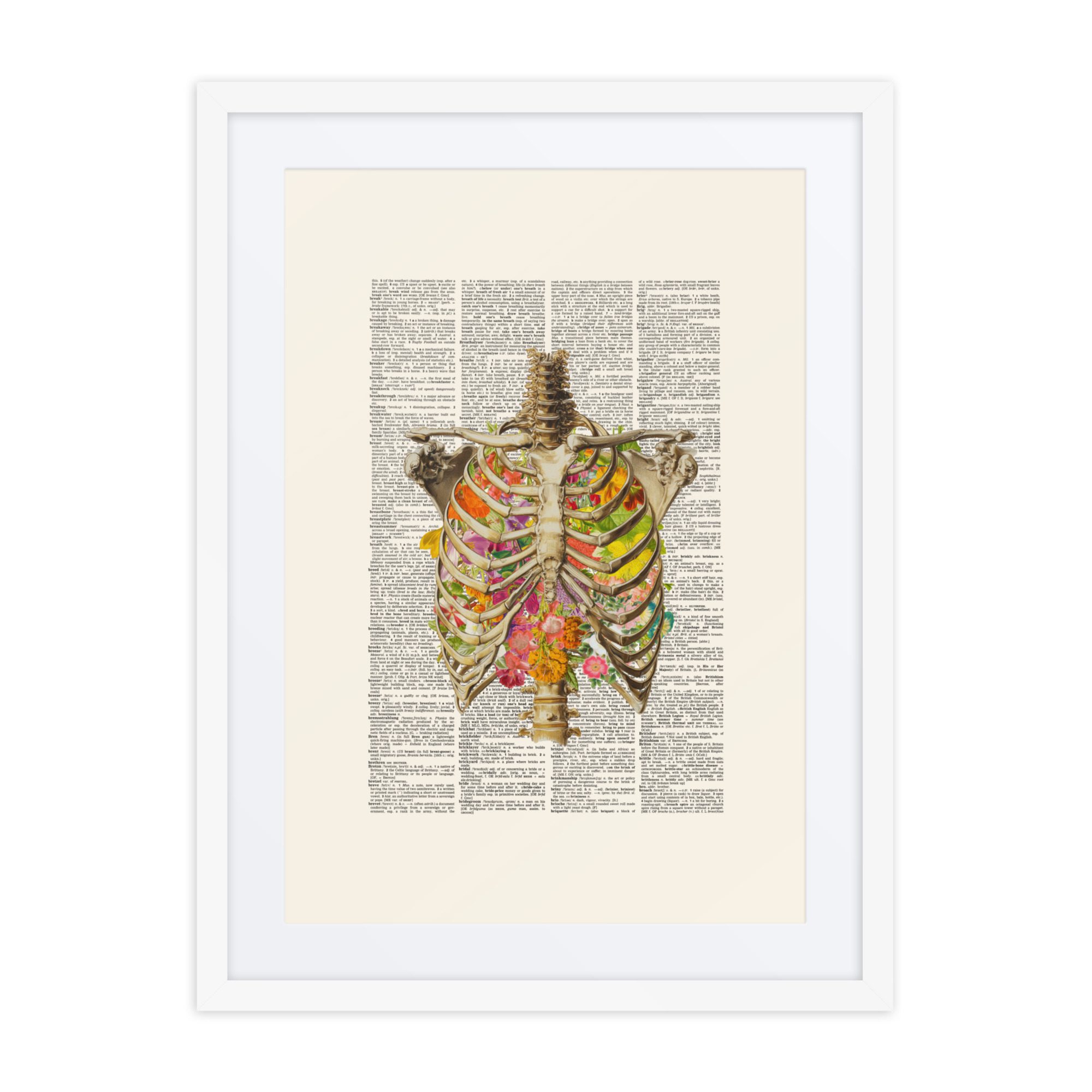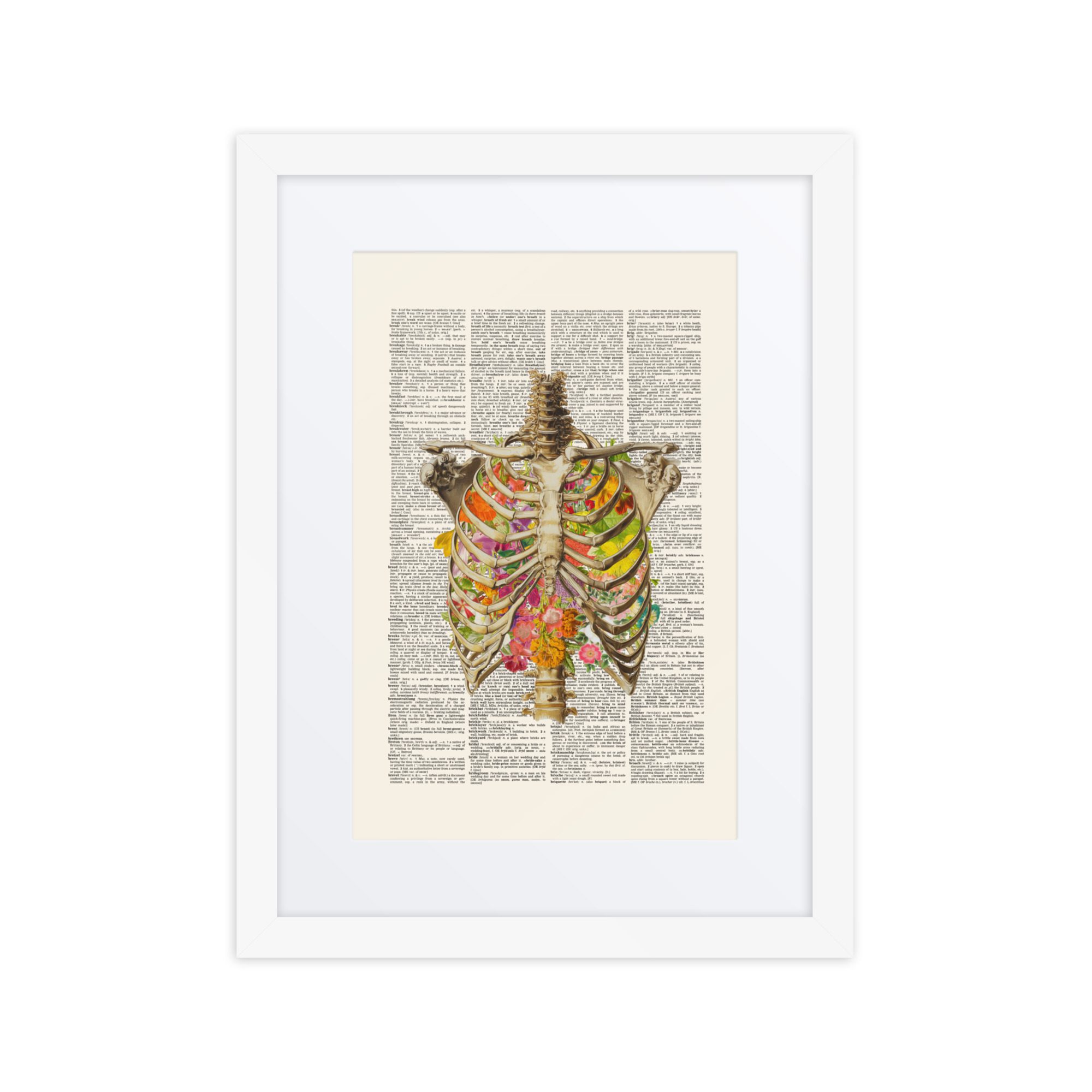 A sweet floral ribs framed art print with gentle colours and a pretty pattern.