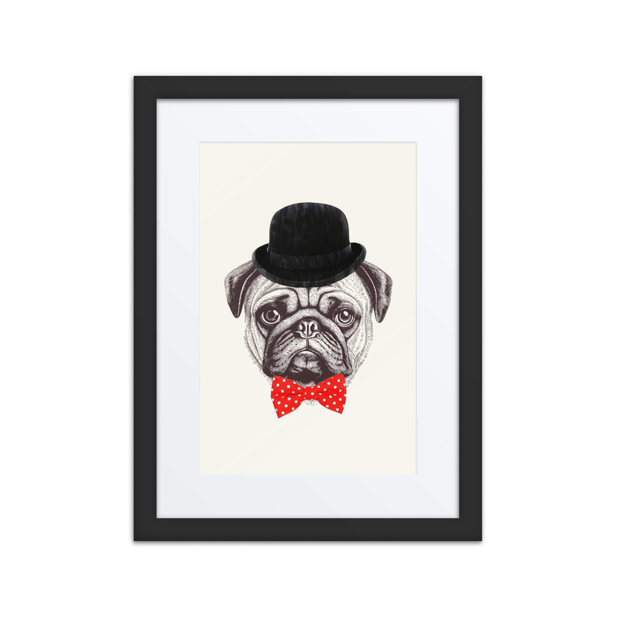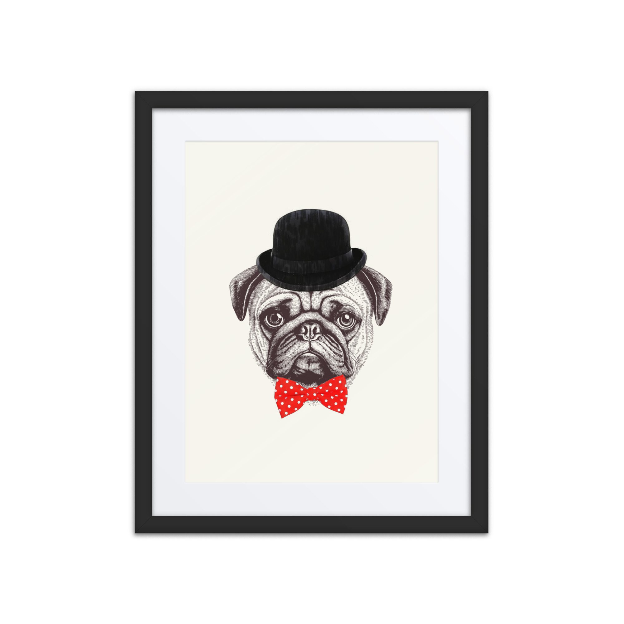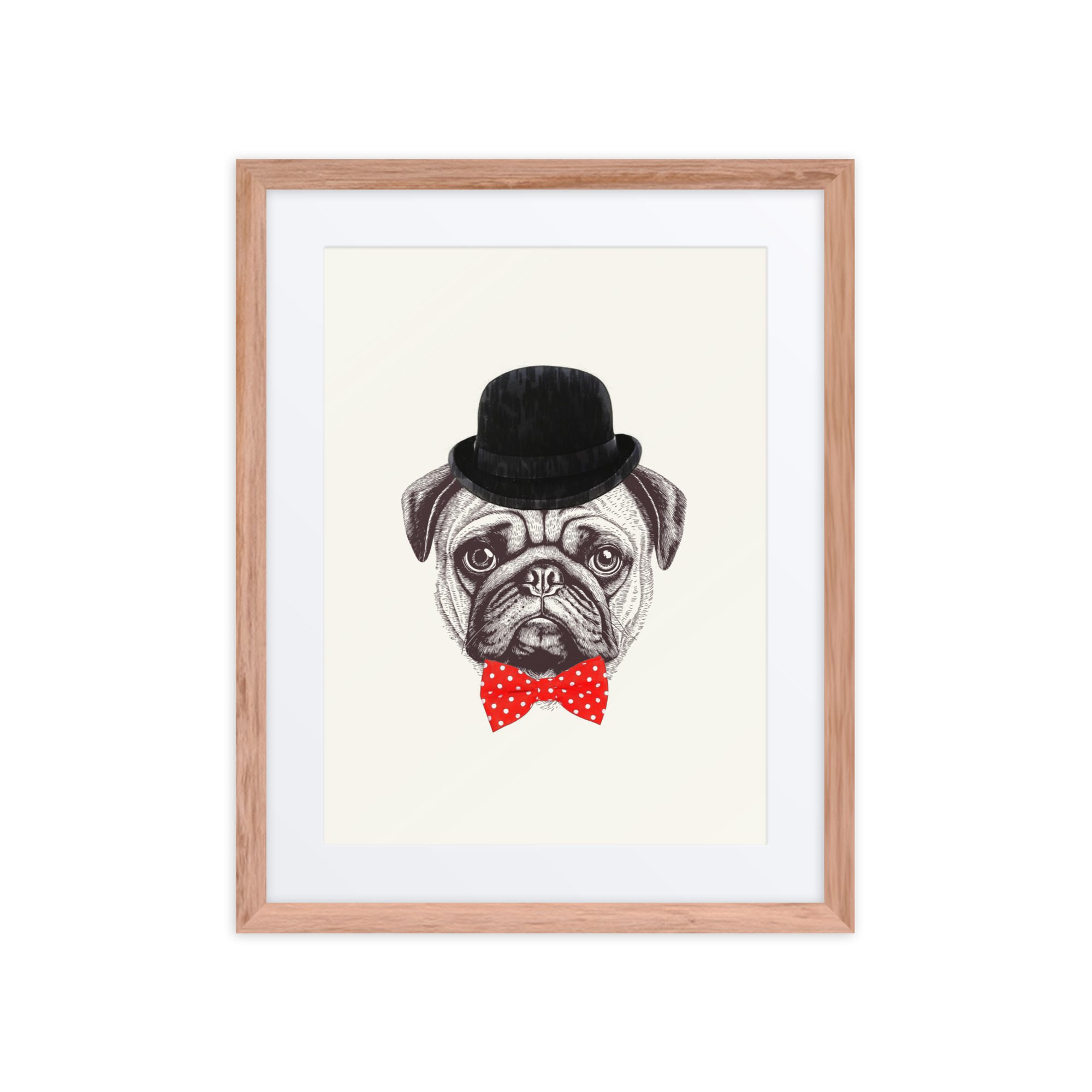 A sweet smart pug framed art print with playful details and lots of personality.