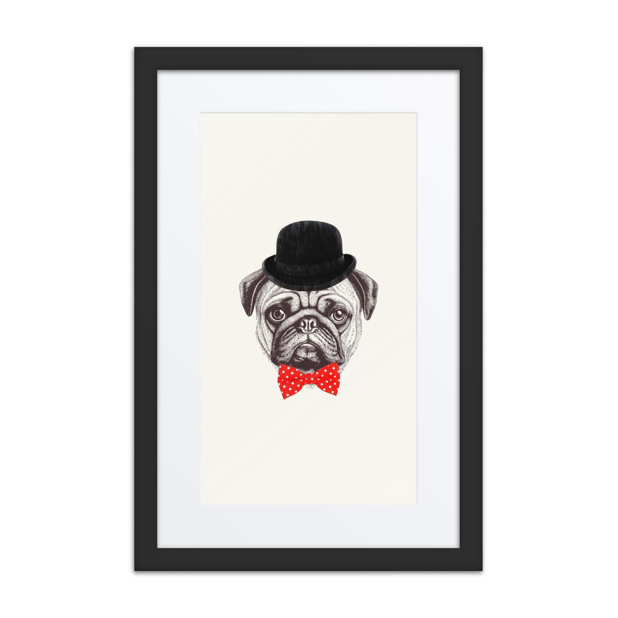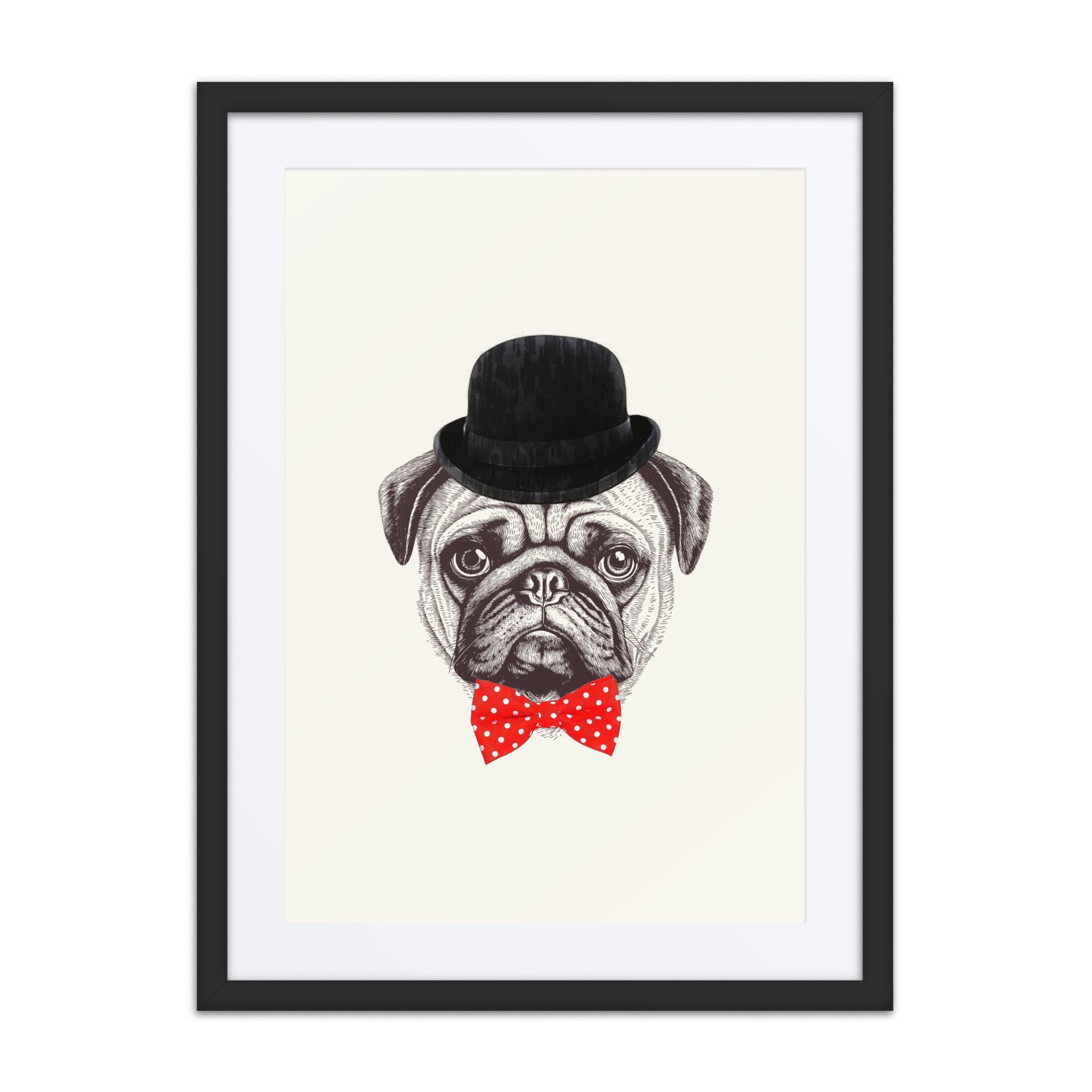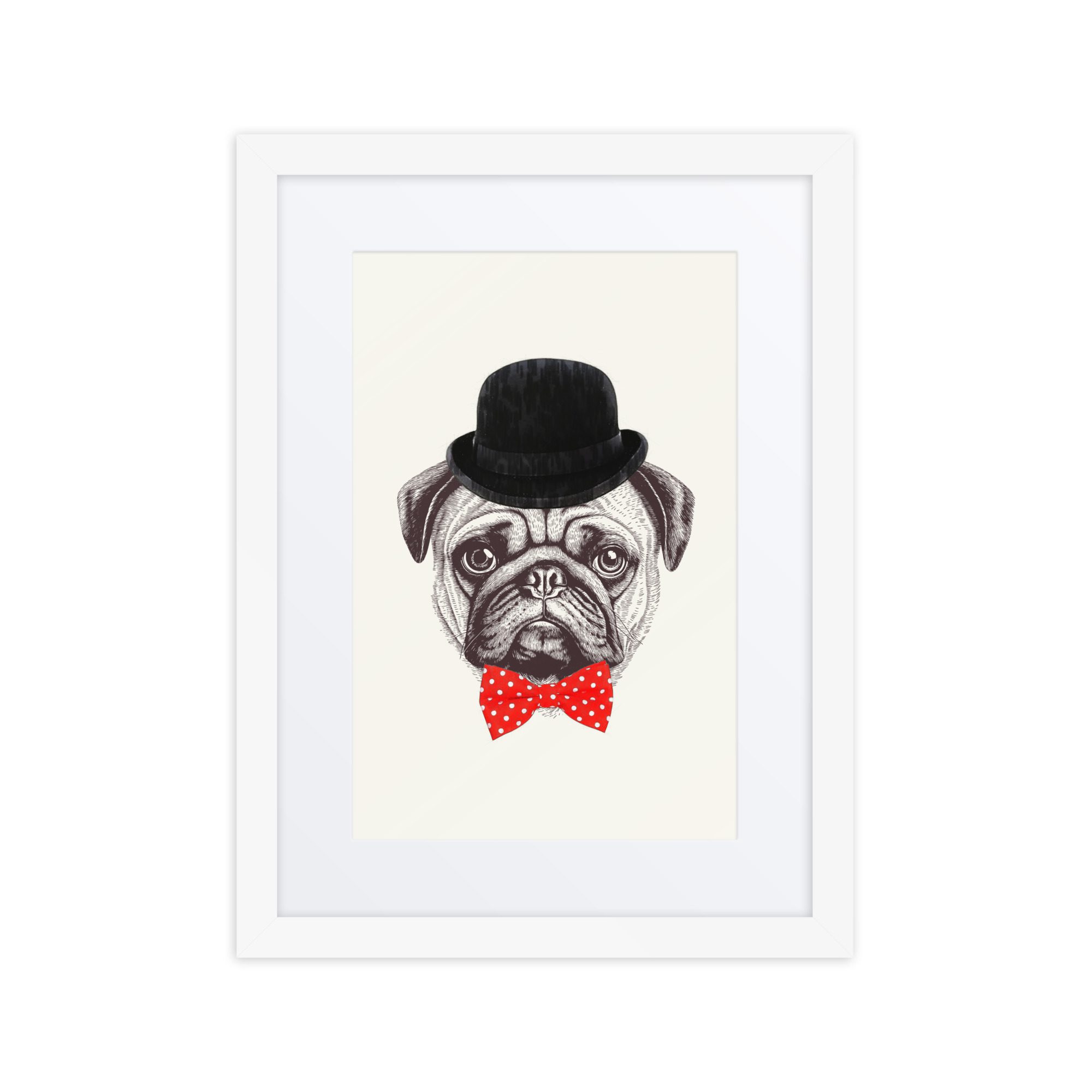 A sweet smart pug framed art print with playful details and lots of personality.