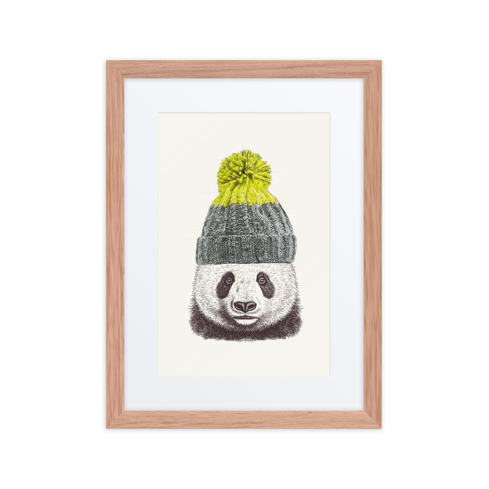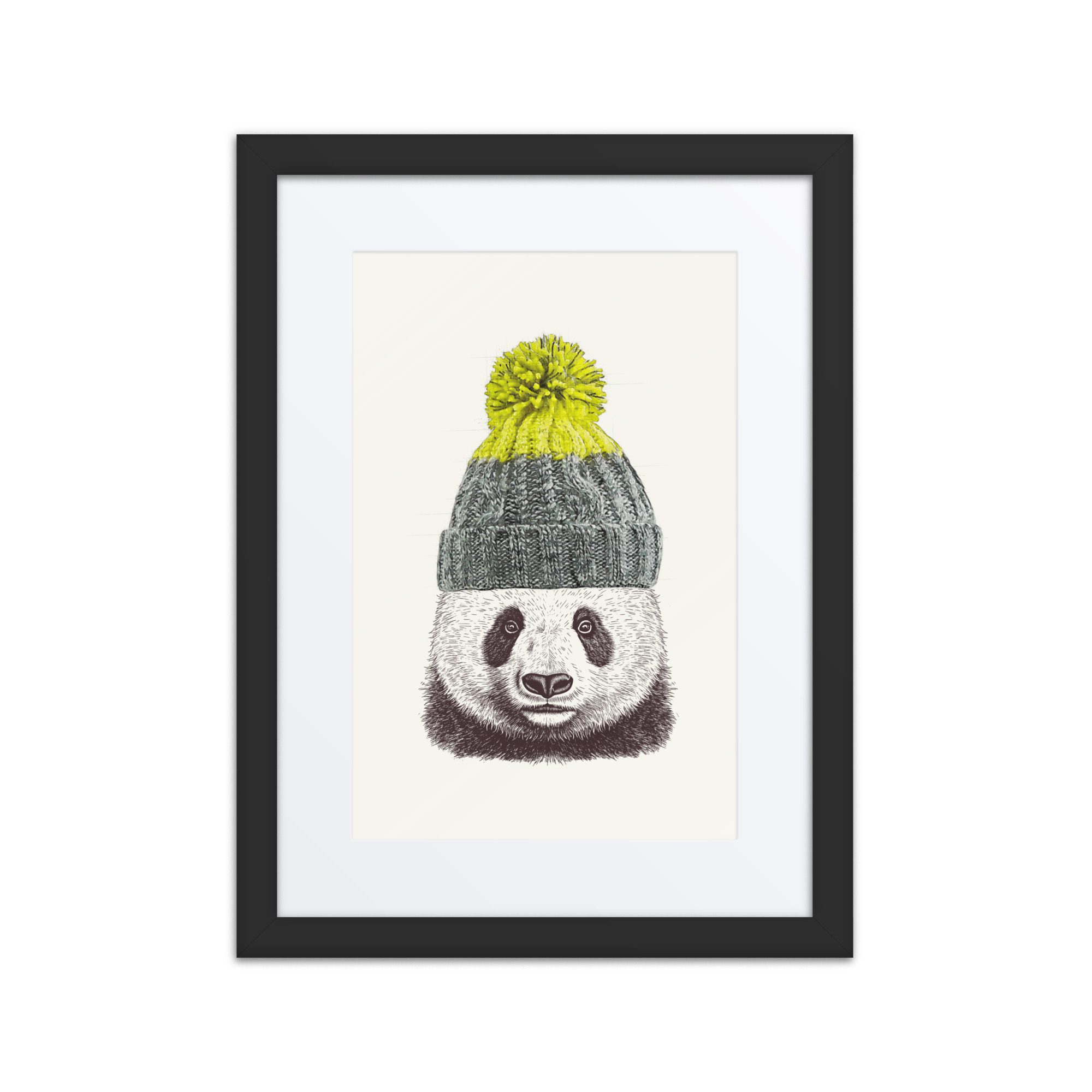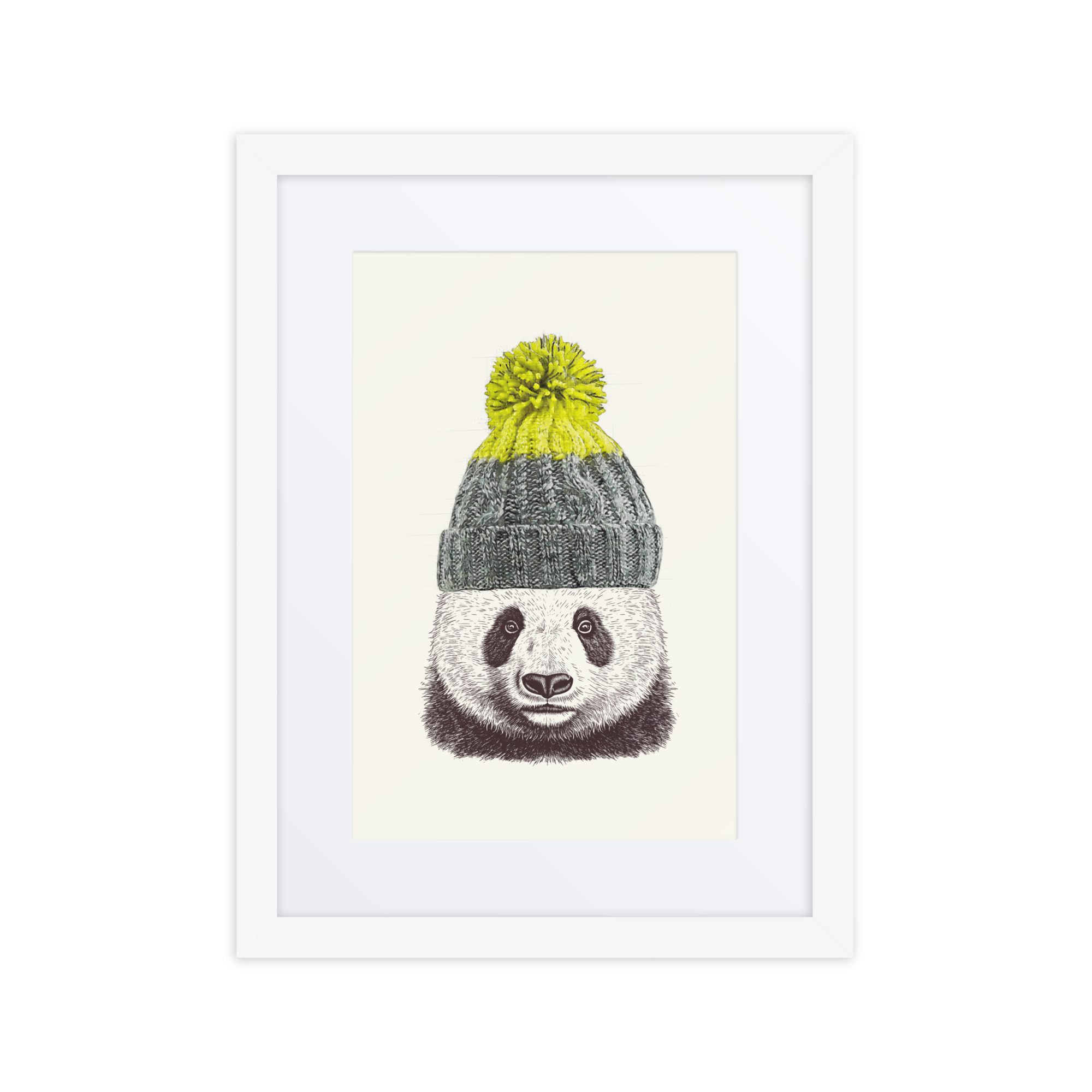 A sweet winter panda framed art print with playful details and lots of personality.