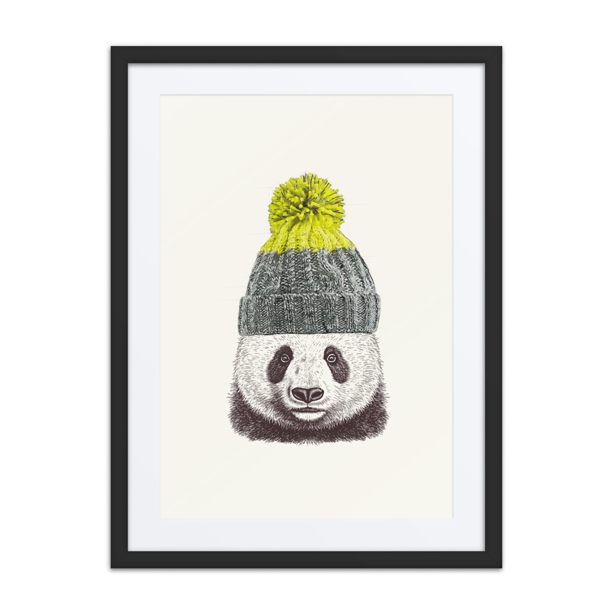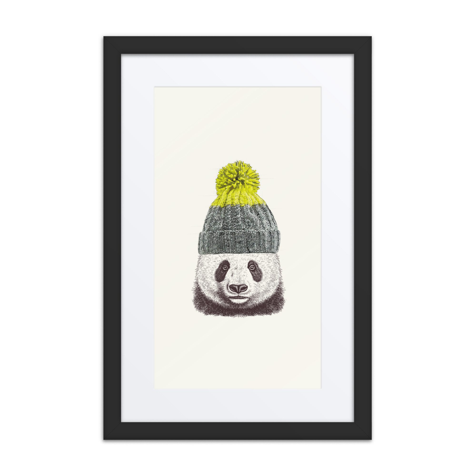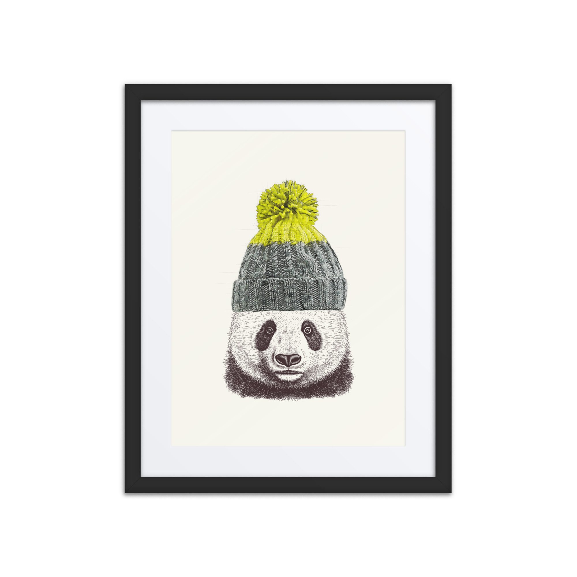A sweet winter panda framed art print with playful details and lots of personality.